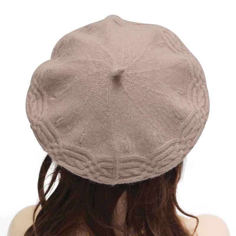 ZLYC French Beret Hat Reversible Solid Color Cashmere Warm Hat for Women Girls(Cable Knit Light Coffee)