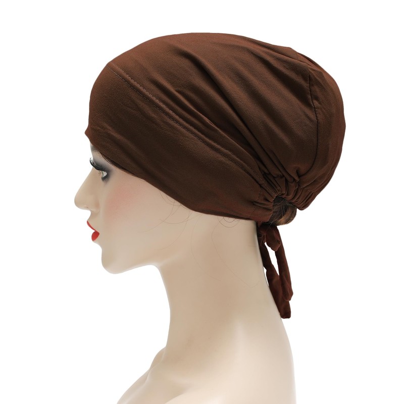 ZLYC Satin Lined Hijab Cap for Women Tie Back Hijab Undercap Inner Underscarf Hat (Solid Coffee)