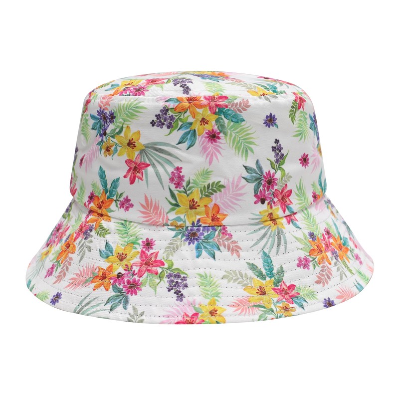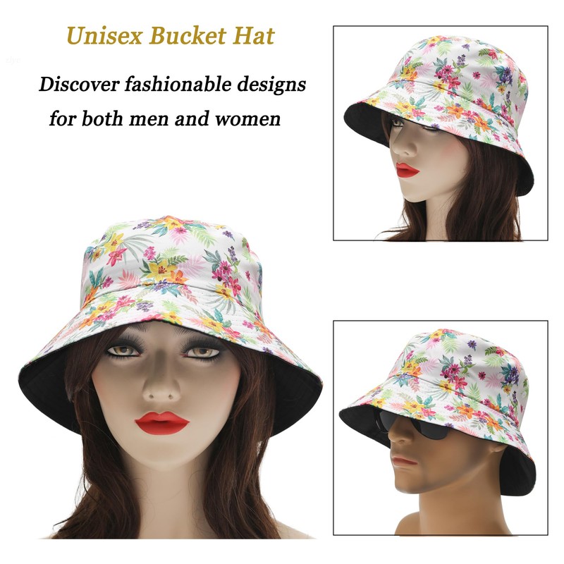 ZLYC Unisex Cute Print Bucket Hat Summer Fisherman Cap(Tropical Flowers White),One Size
