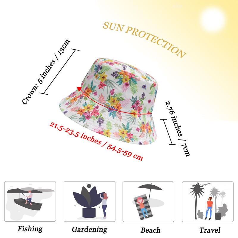 - Fashionable patterns all over the bucket hat, including pineapple, cherry, strawberry, etc. Come in various colors to match your individuality outfits.