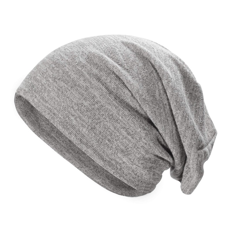 ZLYC Women Fashion Knit Slouchy Beanie Hat Thin Stretch Skull Caps (Plain Gray)