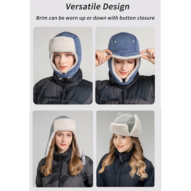 • Versatile Design: Earflaps and brim can be worn up or down with button closure, providing customizable coverage and wind protection. Fits heads about 22.8-24.0 inches/58-61cm.