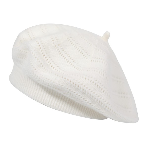 ZLYC Women's Beret Classic French Beret Plain Warm Beret, knitting white