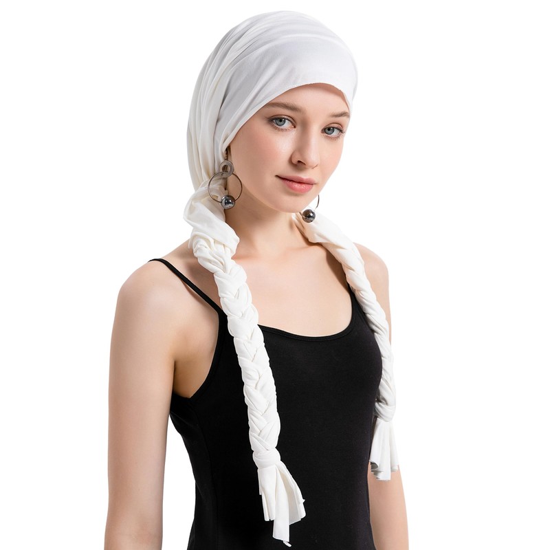 ZLYC Women's Chemo Turban Hat Headwraps Lightweight Beanie Hat, Braid solid white