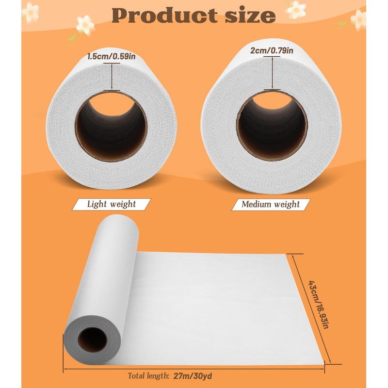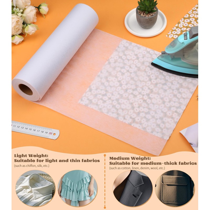 - Fusible Interfacing Size: This interfacing fabric for sewing is 17 inches wide and 30 yards long, and is available in medium and light weight options. It provides enough material for daily sewing and craft projects. The easy-to-cut feature allows it to adapt to a variety of fabric shapes and sizes
