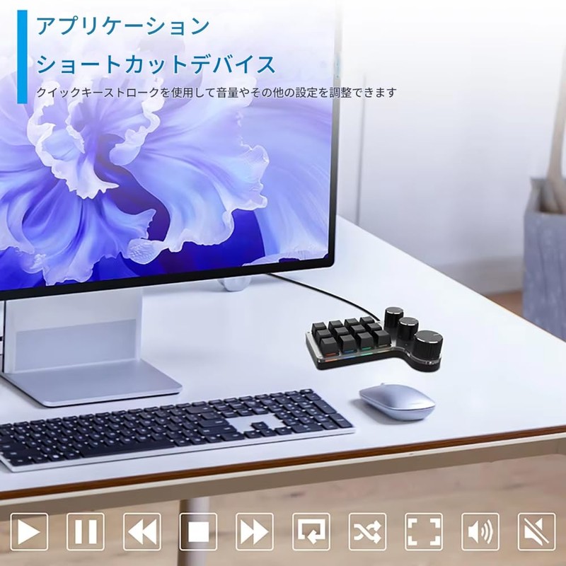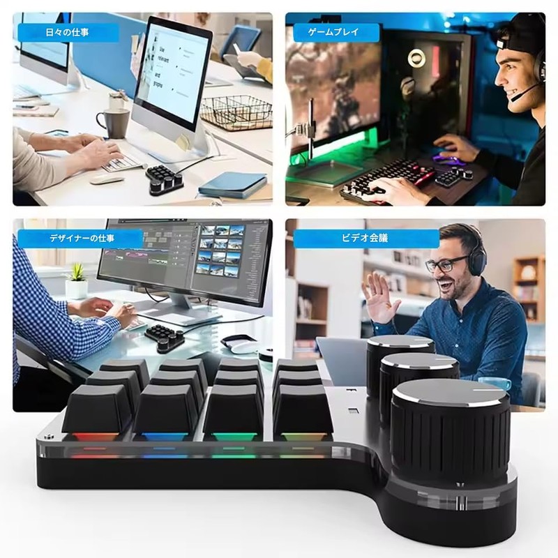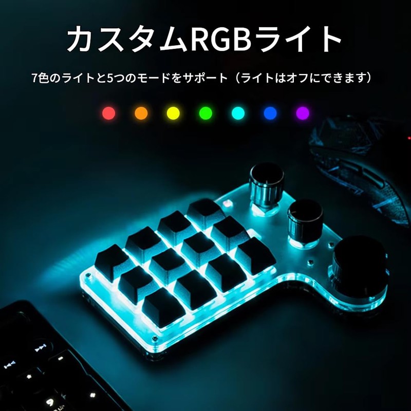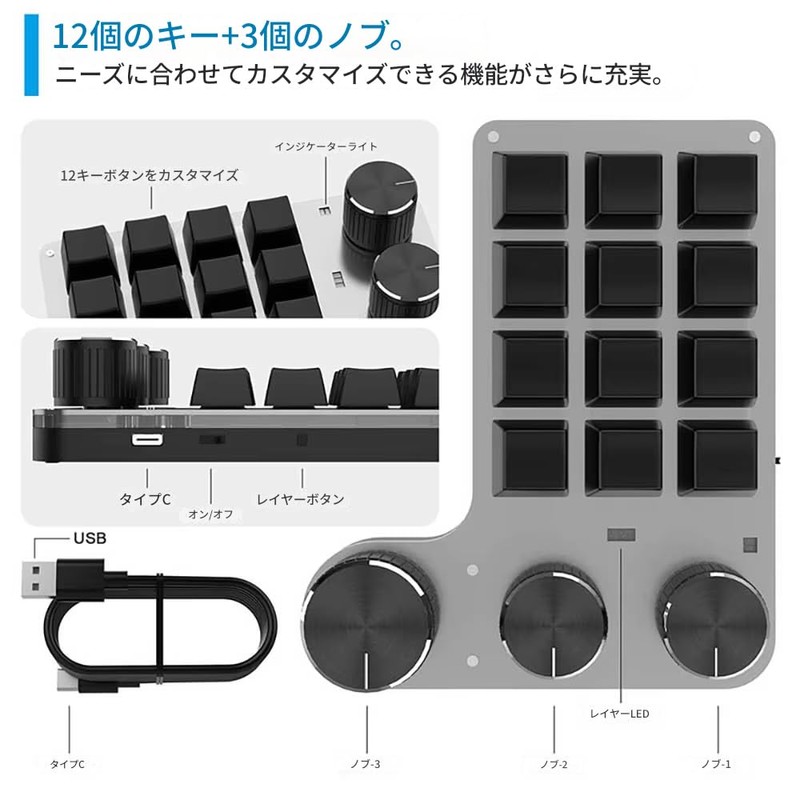 3. Total 12 keys and 3 knobs. Each button and knob function can be customized by turning the knob clockwise or counterclockwise.