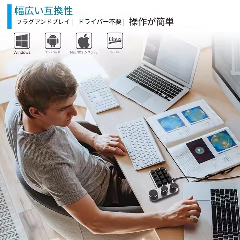 - Features: Toggle switch function to turn on/off the Bluetooth function. Equipped with 2 USB ports that can be placed vertically or horizontally, so you can use it for a variety of purposes. Suitable for installation locations. (Can be used on either side, not at the same time) Total 12 keys and 3 knobs. Each button and knob function can be customized by turning the knob clockwise or counterclockwise. 4.Various LED light effect settings 5. 3 layers structure (LED indicator), meet different usage needs and improve work efficiency without multiple settings, improve your entertainment and leisure experience. 6. Ultra-thin design with silicone non-slip pads on the bottom. Sleek appearance yet easy to use and stable operation. 7. First set up on your windows computer and use it with other computers. You can set the shortcut key combination, one key can enter up to 18 characters. The keyboard also has memory function. Package includes 1 keyboard, 1 USB data cable