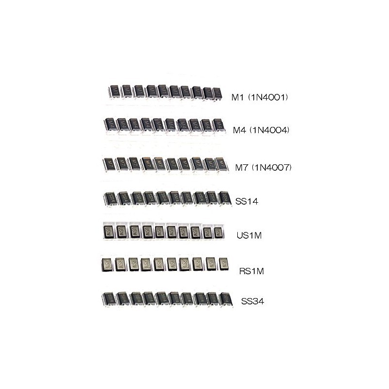 Zmart SMD Diodes 7 Kinds 70 Pcs M1 (1 N4001)/M4 (1 N4004)/M7 (1 N4007/SS14 US1 M RS1 M SS34