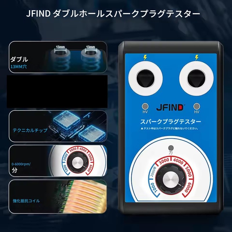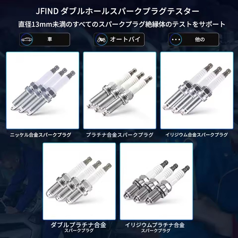 • Jfind JF109 Double Hole Spark Plug Tester Support List: JF109 can be used for cars, motorcycles, speedboats, motor boats, cropper and more? Supports test 13mm spark plugs