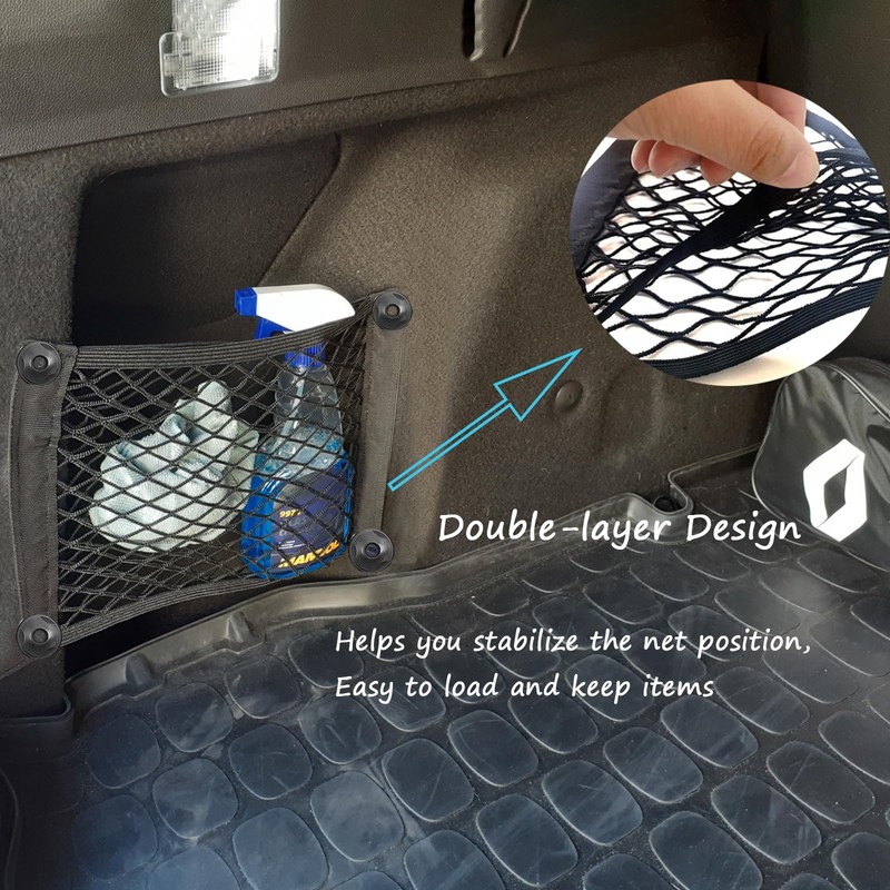 - 【Easy to Install】: Our elastic automotive cargo nets can be easily and firmly attached to the composite fiber surface of seat back or car trunk, just snap the net pocket into the hanging hook, fix the installation position, tighten the screws, all four corners need to be tightened with screws. It is easy to tie down your luggage so it won't wobble in the car.