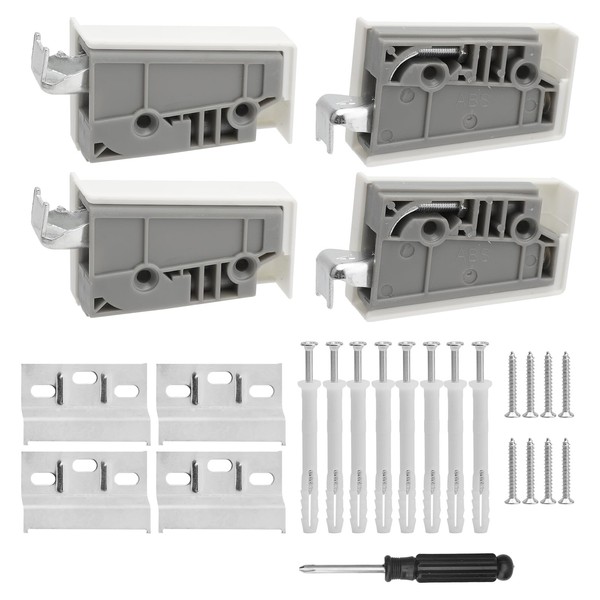 • Cabinet hanger wall mount set: 2 pieces left hanging bracket, 2 pieces right hanging bracket, 4 pieces wall support plate, 8 pieces expansion screw, 8 pieces screw, 4 pieces decorative cover and 1 piece 4 mm Phillips screwdriver. This sophisticated cabinet support system with cabinet hanger wall mount allows for secure wall mounting cabinet for different furniture types