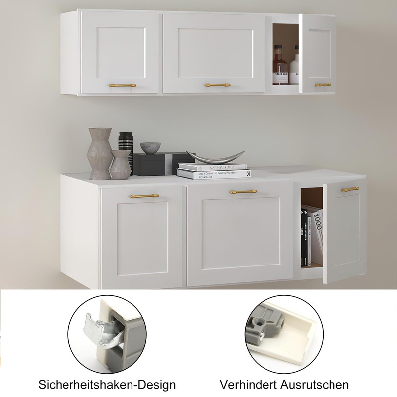 • 【Easy to install】: The cabinet hangers are fixed using the included tool. After attaching the wall support plates with dowels, the hanging rail is aligned horizontally. The cabinet rack can then be easily hung - also ideal for renovations