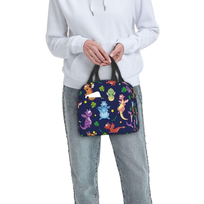 Zminciu Cute Dinosaur Lunch Bag Reusable Zipper Closure Leakproof Insulated Lunch Box Cooler Tote Bag Food Container Snack Bag