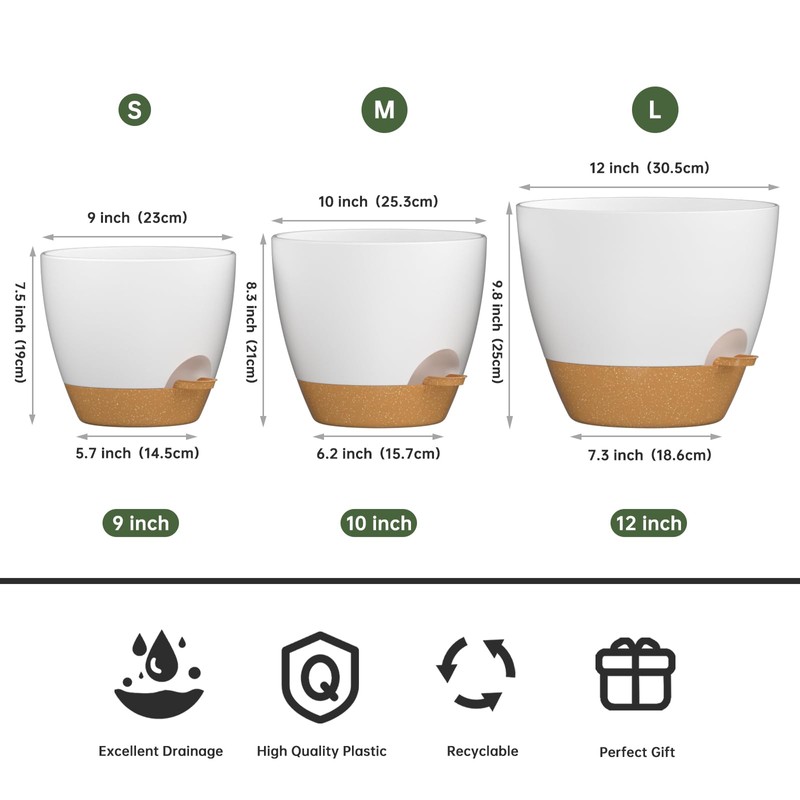 1. A Set of 3 Sizes: our plant pots offer 12inch, 10inch, 9inch three sizes, which can meet the growth needs of different plants and space constraints.