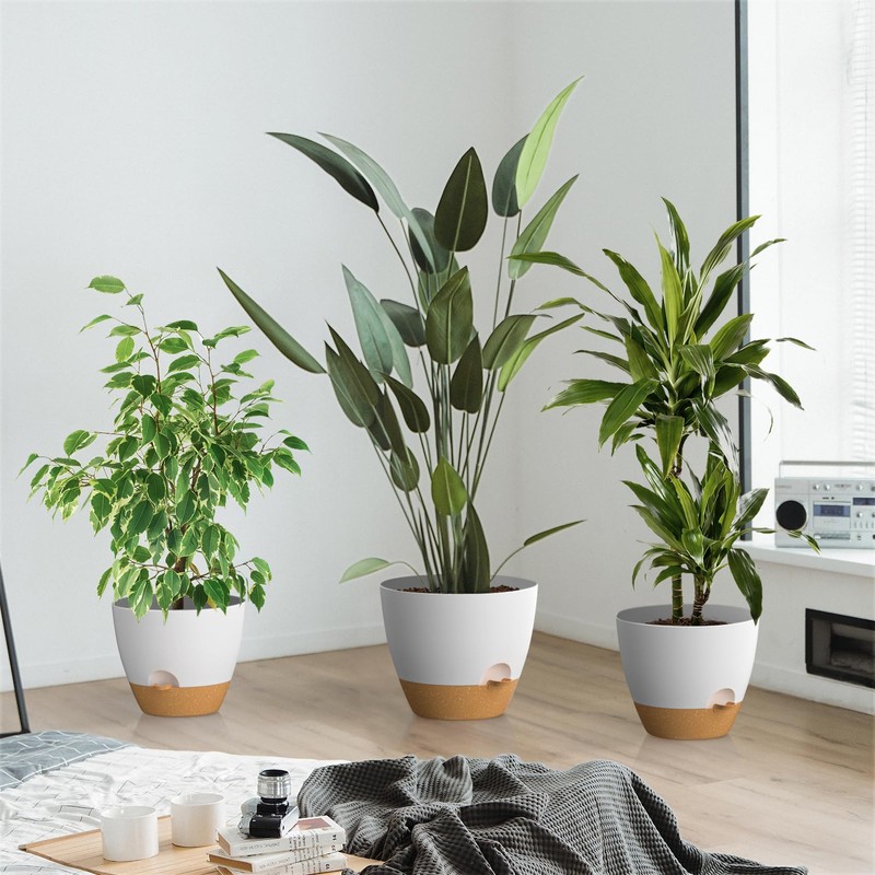 - Different Size Combo: This set of three self watering plant pot, each with an opening diameter of 12/10/9 inches, are suitable for a variety of indoor and outdoor plants, such as Peace Lilies, Aloe Vera, Orchids, Snake Plant, Cactus, ZZ Plants, Kentucky Palms, Monstera, Boston Ferns, Air Plants, etc. Please note:Plants are not included