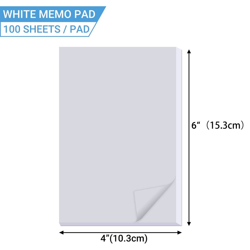 - Package including: 20 Pack white 4”x6” Memo Pads. 100 sheets each blank notepad