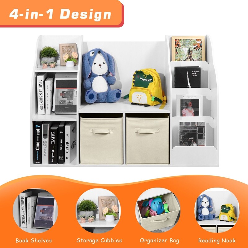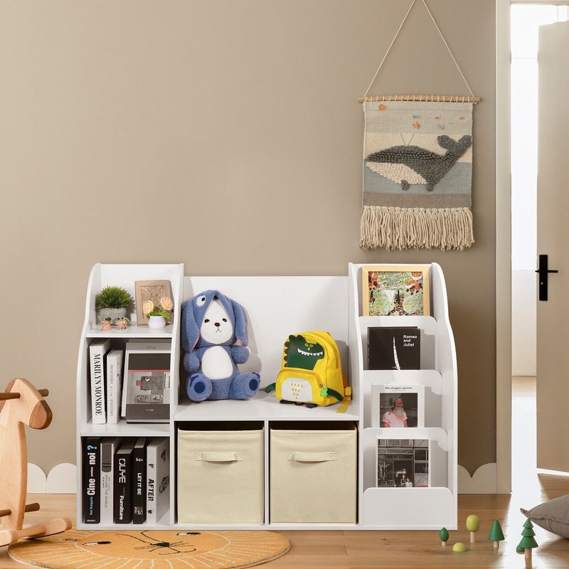 【WITH 2 FOLDABLE FABRIC BINS】- This kids book shelf organizer comes with 2 packs of non-woven fabric storage bins in the bottom cubbies to keep kid’s toys and games. These toy storage organizers can also be removed and used separately.