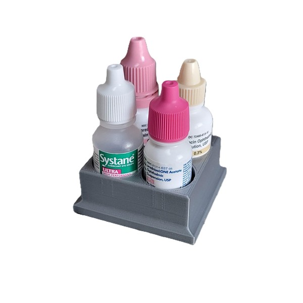 Description: The Znet3D Eye Drop Bottles Organizer & Storage is a versatile and practical solution for managing your eye drop bottles. With its four-slot design, this organizer ensures that your bottles are securely stored and easily accessible. Its compact and durable construction makes it perfect for use at home or on the go. Measuring 2.25" x 2.25" x 1" and weighing just 1 oz, it offers a lightweight and space-saving design. Designed, developed, and produced in the USA, this organizer is crafted from eco-friendly PLA plastic using advanced 3D printing technology, reducing waste and promoting a cleaner environment. Key Features: Four-slot design to hold up to four eye drop bottles securely. Compact dimensions: 2.25" x 2.25" x 1"; lightweight at 1 oz. Designed, developed, and produced in the USA. Keeps bottles upright to prevent spills and maintain organization. Designed, developed and produced in the USA | Made with Plastic (PLA) - Utilizing the latest Additive Manufacturing Technology (3D Printing) - Producing less waste & Cleaner Environment