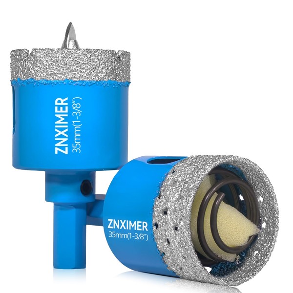 ZNXIMER Diamond Hole Saw Drill Bits - 2pcs 1-3/8" Diamond Drill bits Accurate Drilling for Tile, Ceramic, Marble, Granite, Stone, Glass Bottles 35mm