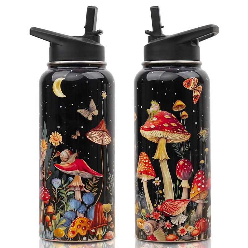 ZNYYZYBA Insulated 32 oz Mushroom Water Bottle with Straw and Lid, Reusable Leakproof Stainless Steel, Mushroom Gifts for Women