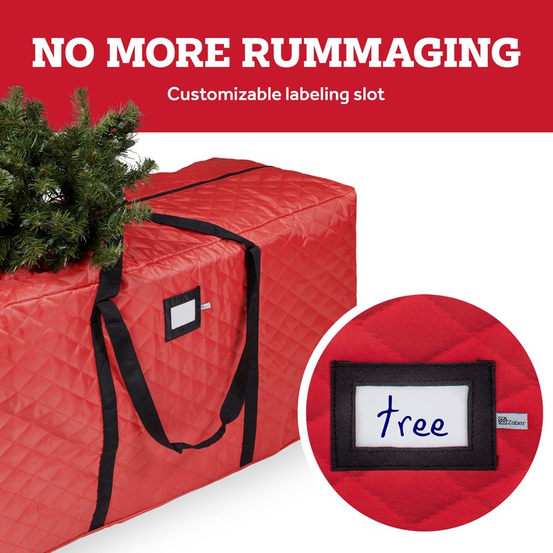 - SIMPLE IDENTIFICATION - This festive, bright red holiday tree bag stands out in storage helping you to easily locate your tree, and the attached card slot lets you label exactly what’s inside.