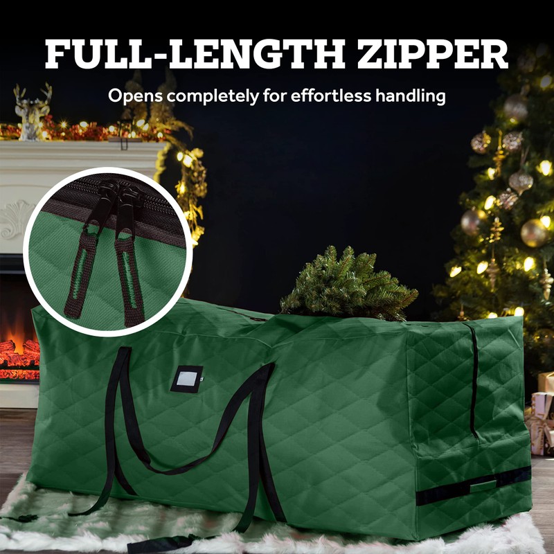 Zober Christmas Tree Storage Bag - Open Top, Quilted Christmas Tree Storage Box for Disassembled Trees up to 9 Feet with Carry Handles and Dual Zipper - 59x15x21.75 Inches, Green