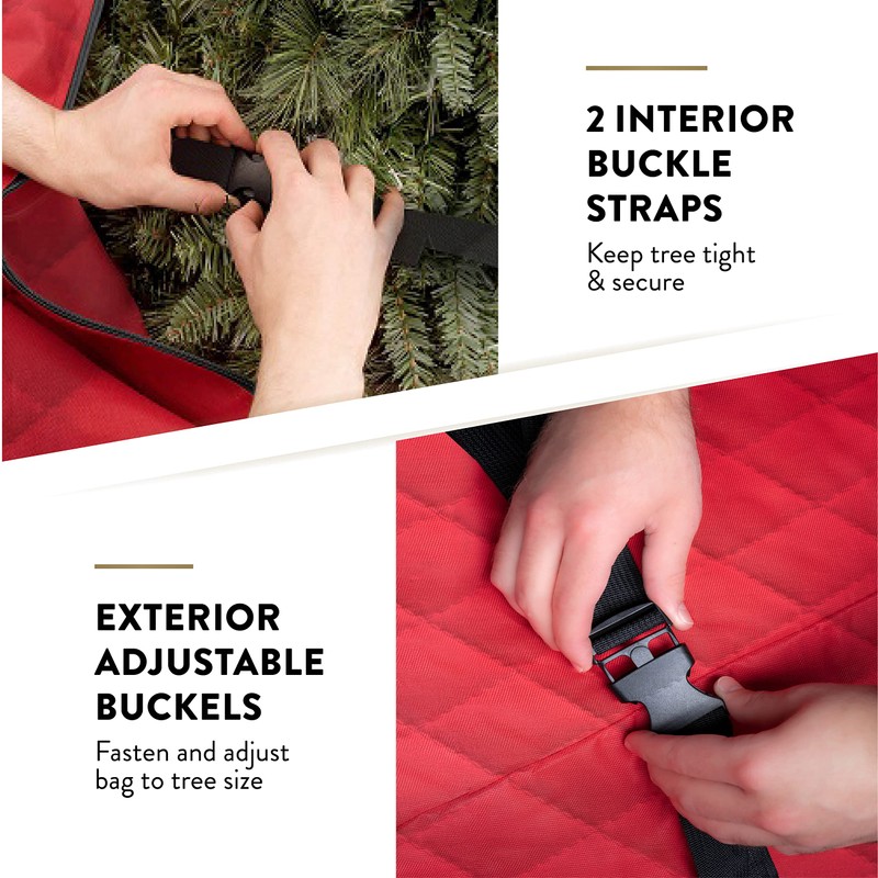 - Security and Ease-Two buckle straps secure the tree, protecting it in transit. Ergonomic carry handles let you lift the bag with ease.