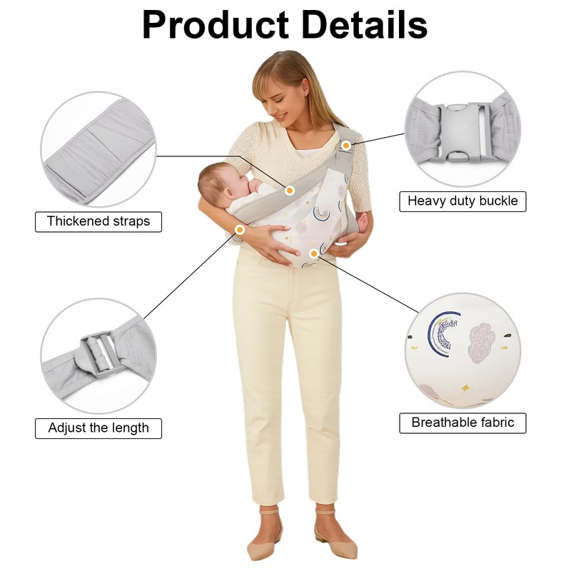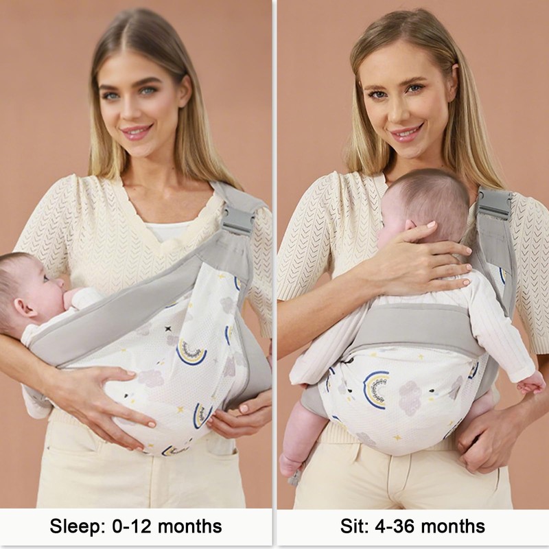 - 【Ideal for On-the-Go Parents】Lightweight and compact, this baby sling carrier folds up easily for storage in a diaper bag or suitcase. Whether you’re running errands, traveling, or exploring the outdoors, it’s the perfect hands-free solution for busy parents.