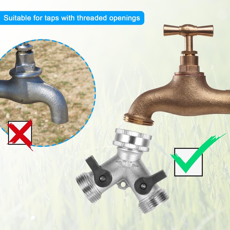 - 【Eco-friendly & Durable】The rugged brass design keeps the connection all year round, remains stable in all weather, and provides you with a reliable and high quality double water source through an outdoor faucet.