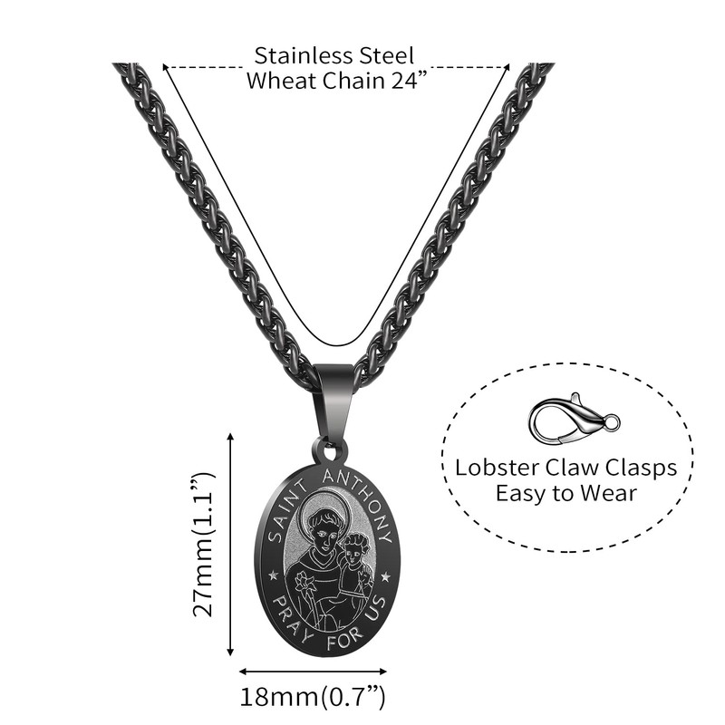 - 【Size】Oval St Anthony Medal: 1.1*0.7 inch (27*18mm), Stainless Steel Wheat Chain Length: 24 inches. Suitable for men and women