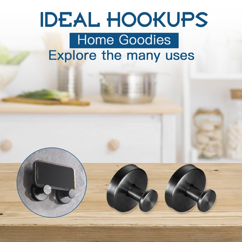 - ⚫【Fashionable Decoration】The black suction cup towel hooks has a simple and stylish appearance, the surface shows a metallic luster, and the smooth lines can be matched with any minimalist, metallic, ins style furniture style, which helps to keep the space neat and orderly.
