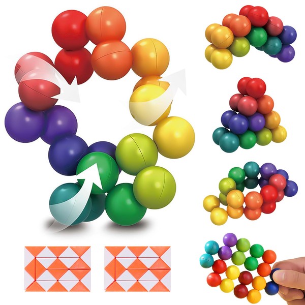 ZOCONE Sensory Fidget Toys for Kids, Sensory Balls for Autism with 2 Snake Cube Traveling Quiet Toys for 3-12 Year Old Age, Rainbow Fidget Variable Ball Cool Desk Toys ADHD Fidget Toys for Toddlers