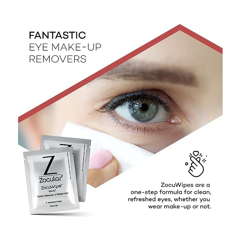 - Easy to use-once-a-day formulation; Zocular eyelid scrub wipes are fantastic eye make-up removers. Ideal for on-the-go lifestyles, ZocuWipes are a one-step formula for clean, refreshed eyes, whether you wear make-up or not.