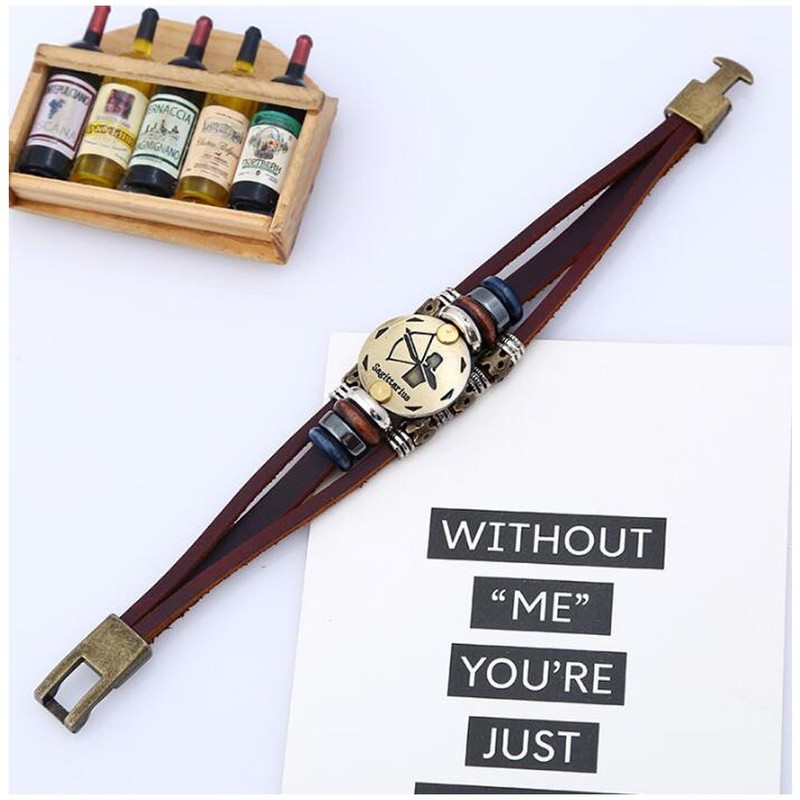Zodiac Sign, Constellation, Astrology Bracelet, Charm Leather Wristband, Bangle, Base Metal, Sagittarius 01