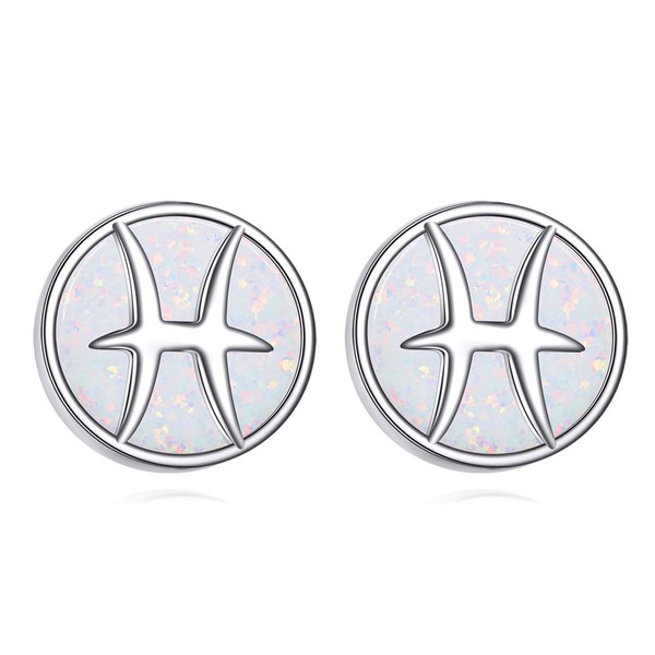 Zodiac Sign Earrings for Women Girls 925 Sterling Silver Constellation Stud Earrings White Opal Zodiac Sign Jewellery Gift, Sterling Silver, Opal