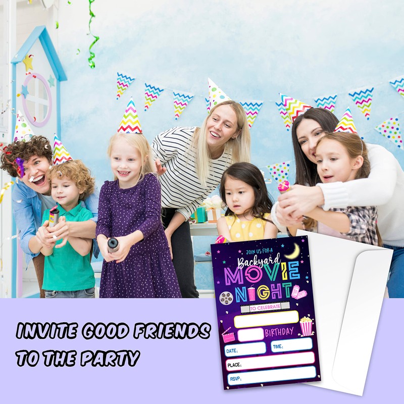 - Movie Night birthday Invitations cards perfect invitations for girls, boys, kids, toddlers and teen designs! When your guests receive the invitation, they will be very pleasantly surprised and look forward to attending your invitation, leaving a good impression and blessing on your guests...