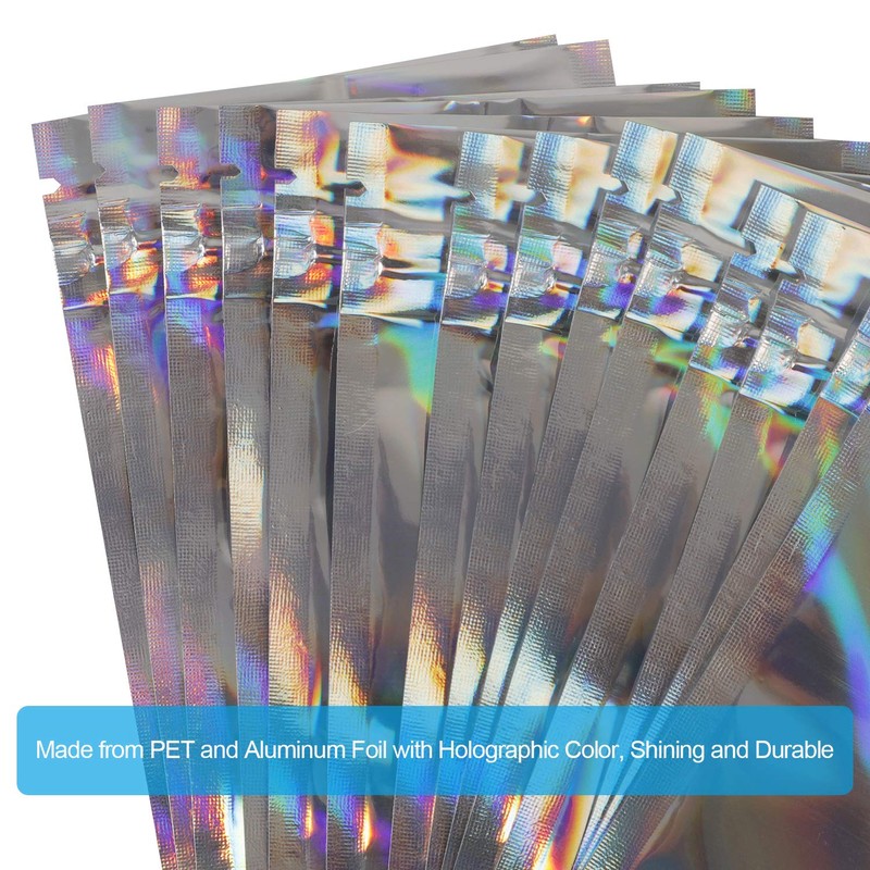 - HIGH-QUALITY MATERIAL - These storage bags made from PET and aluminum foil with holographic color, shining and durable, comes with premium tight resealable zip lock, convenient to close and open, waterproof and smell proof, keep things organized and clean.