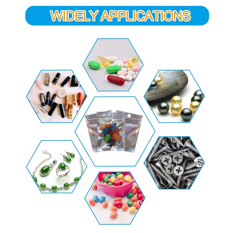 - WIDELY APPLICATIONS - These mylar ziplock bags are perfect for home, school, office, and business use, help to store small items, such as small gifts, treats, screws, spices, components, jewelry, lip gloss, lashes, etc.