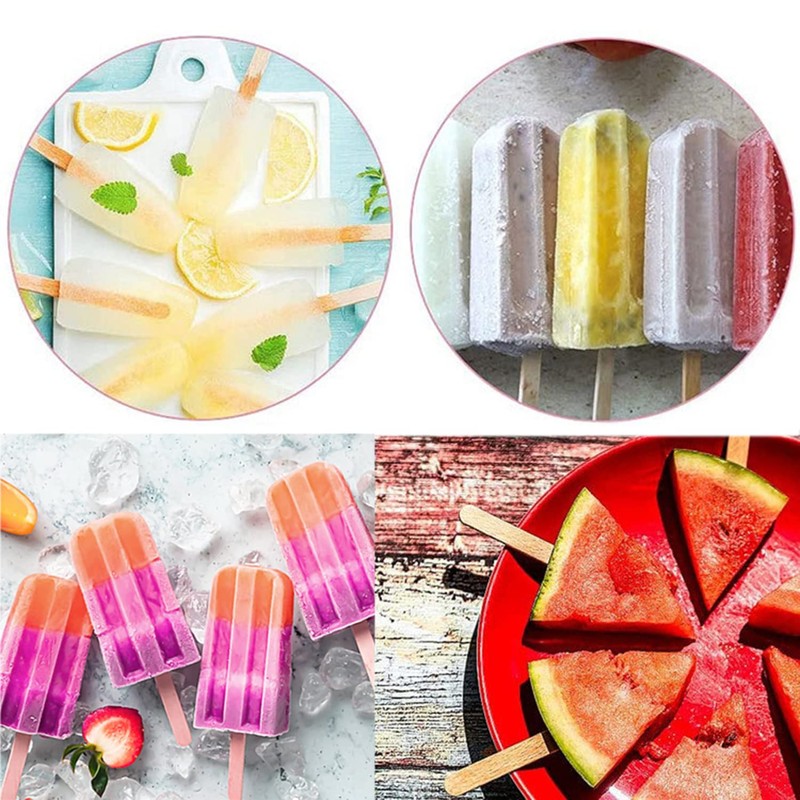 - | Sizes | - Total of 100 wooden ice sticks, 114 mm x 10 mm x 2 mm.