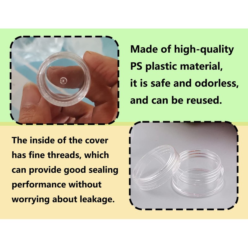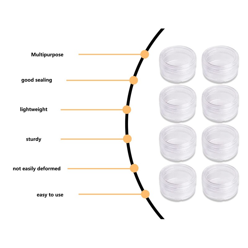 - [Package Content]: You will receive 8 empty boxes. This clear empty cosmetic box has a capacity of 5g and is perfect for storing small amounts of cosmetics such as powder or liquid cosmetics. It is very lightweight and can be carried around with you, so you can easily use it outdoors or on the go.