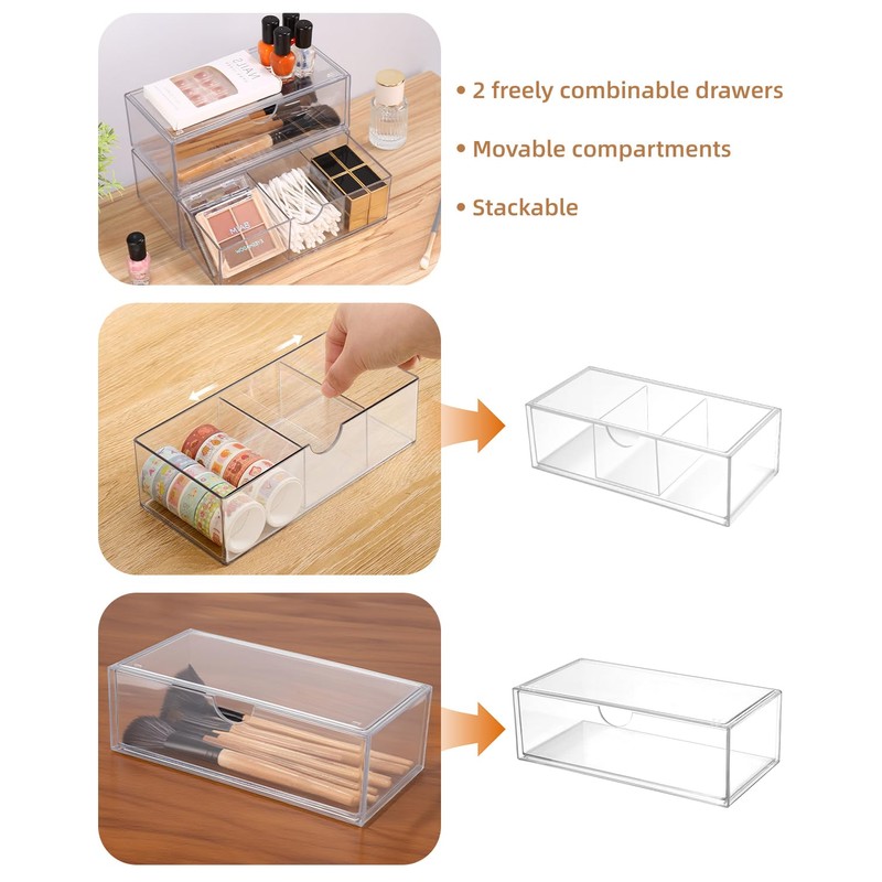 Multifunktionales Design und optimierte Raumausnutzung: Unsere 2 Make Up Aufbewahrung Transparent sind die perfekte Lösung zum Ordnen von Kosmetika, Schmuck, Badezimmerartikeln, Büroartikeln oder kleinen Schlafzimmerartikeln. Dank der stapelbaren Größe können Sie die Schubladen nach Bedarf anpassen und bis zu 50 % Platz auf Ihrem Schminktisch, Schreibtisch oder Bücherregal sparen.