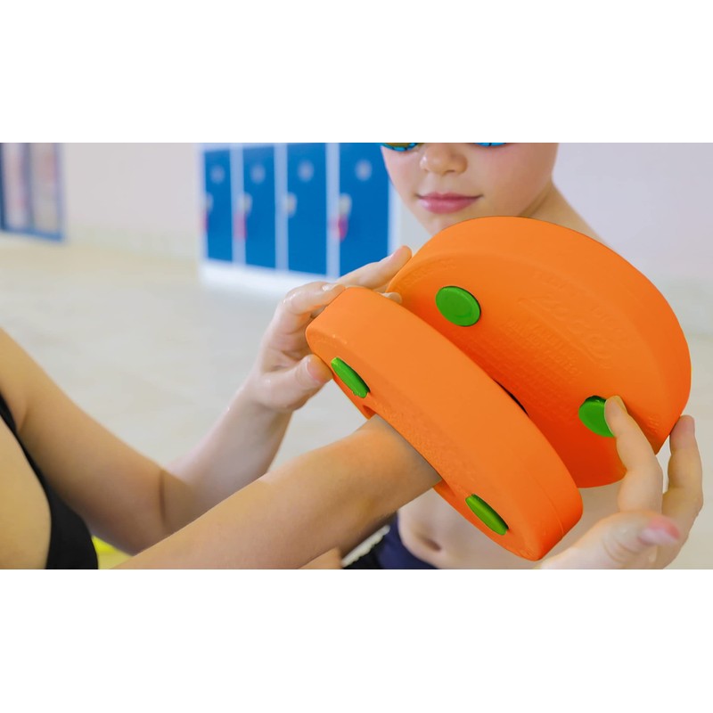 - Variable buoyancy: set includes four float discs, start with two floats per arm and remove one from each arm to reduce buoyancy as your child's confidence in the water grows