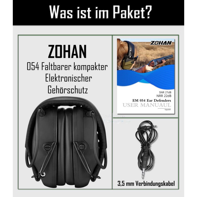 ZOHAN 054 Electronic Hearing Protection Shooting Ear Muffs Ear Muffs Noise Dampening for Hunting Shooting Insulation Value NRR22dB SNR 27dB Dynamic Noise Control Black