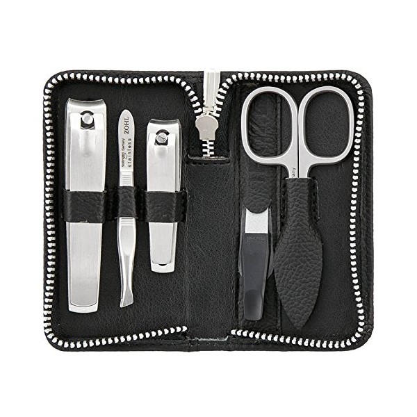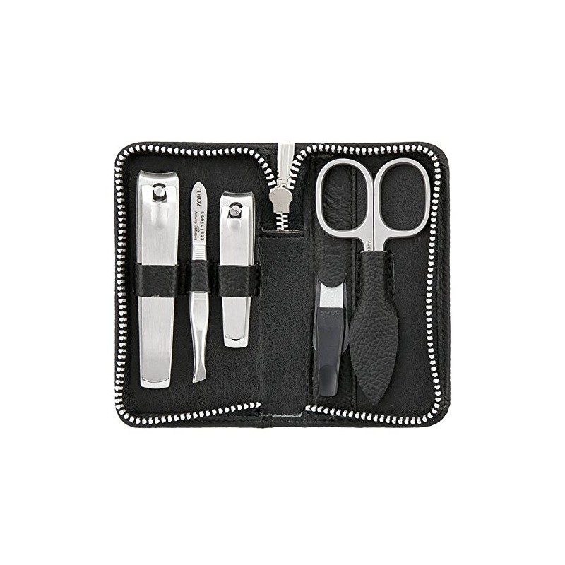 - HIGH QUALITY STAINLESS STEEL MANICURE SET MADE IN GERMANY: ZOHL manicure set is crafted from fine rostfrei steel with perfectly sharpened edge that trims nails smoothly and easily. The set includes high quality German nail clippers for fingernails and toenails, manicure scissors, nail file, and eyebrow tweezers.