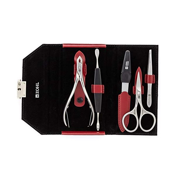 ZOHL Solingen Classic Ladies Manicure Set SHARPtec with German Cuticle Clippers in Red Leather Case (GRA-M30)