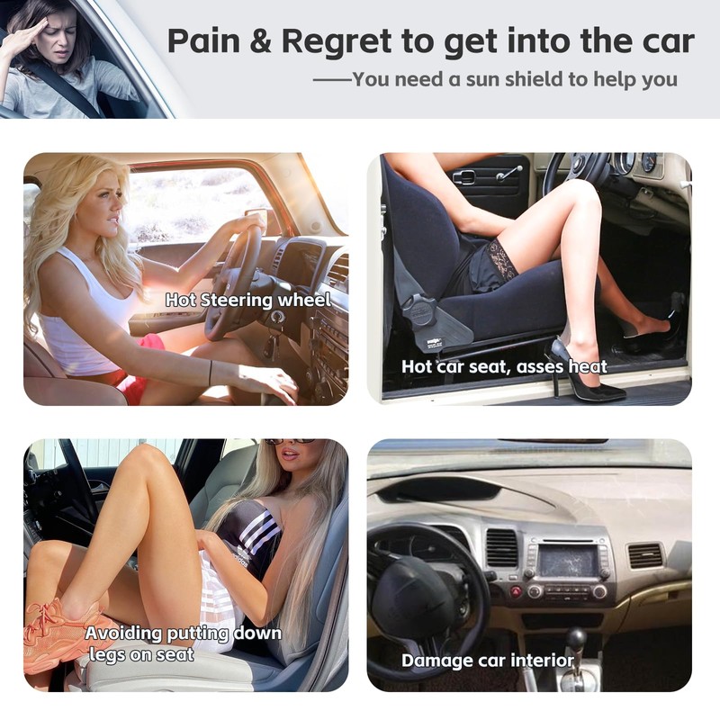 - SAVE YOUR CAR'S INTERIORThis retractable sun visor cover is specifically designed to keep your vehicle's interior cool, preventing fabrics, leathers, and other materials from heat or sun damage.2 in 1 function,Not only the sun block, but also the protective effect.
