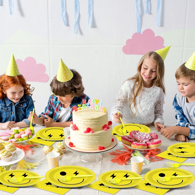 - Cute and fun design: Smile face party supplies is clearly printed, the bright yellow color can attract everyone's attention, the pattern is the classic smiley face, the eyes are designed with lightning and stars, it looks cute and adds more fun to your party.