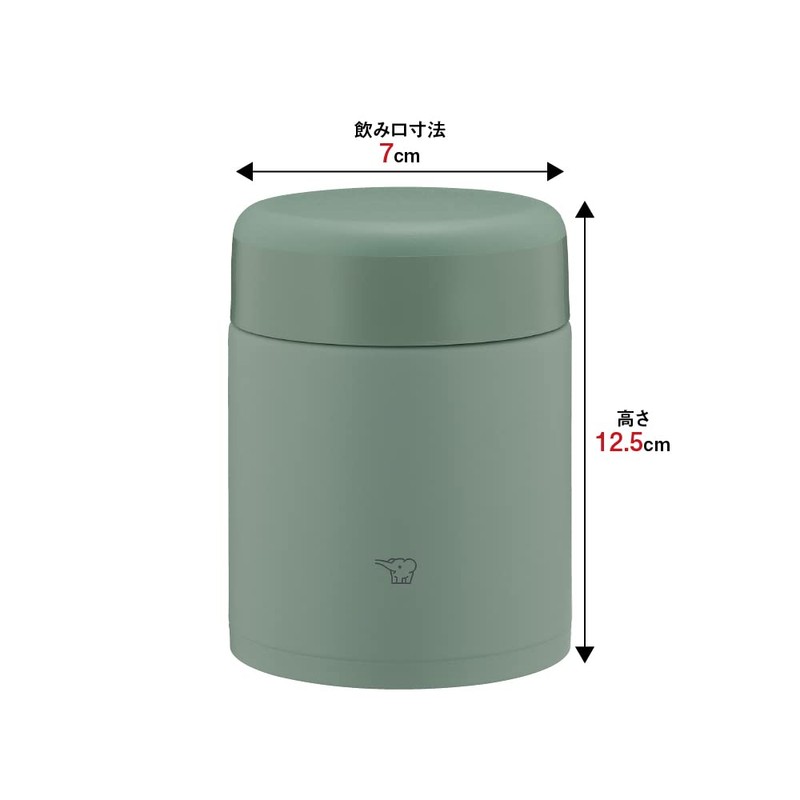 ZOJIRUSHI SW-KA40-GM Mahobin Stainless Steel Thermal Soup Jar, Lunch Jar, Seamless 13.5 fl oz (400 ml), Matte Green, Integrated Lid and Seal, Easy to Clean, Only 3 Pieces