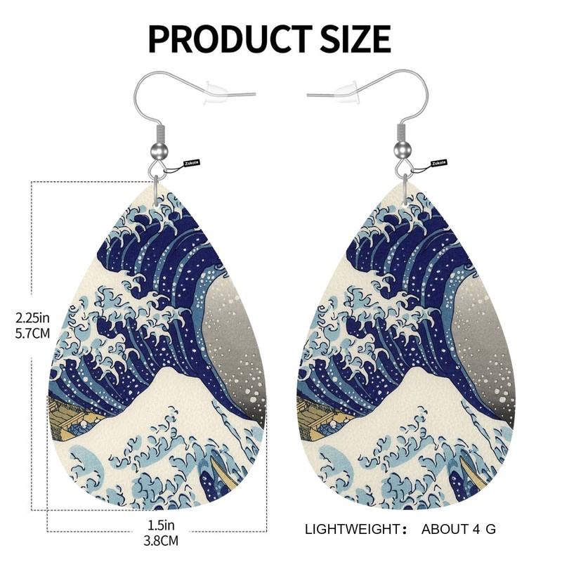 Zokola Drop Earrings The Great Wave, Retro Japanese Kanagawa Pattern Lightweight Teardrop Faux Leather Earrings, Ear Pendants Dangle Earrings For Woman Friends