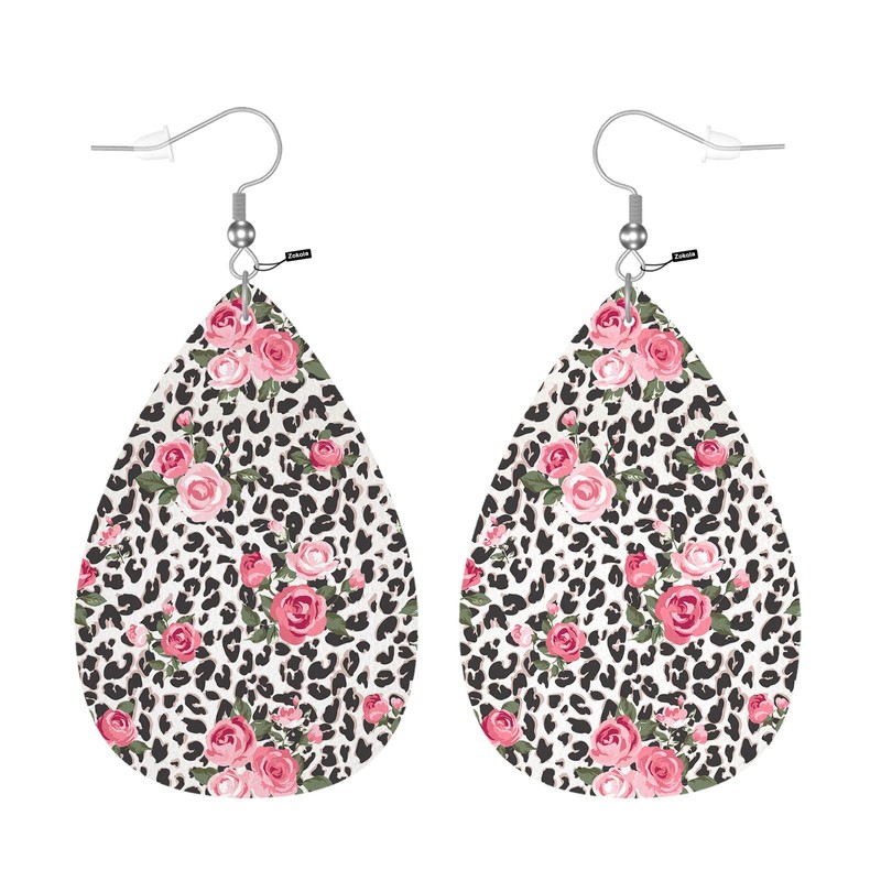 • 1. GREAT MATERIAL -- Rose Leopard Print Women drop earrings is made of PU faux leather and stainless sliver hook. Not rust, not damage your skin. Wearing earrings for a long time will not make your ears uncomfortable